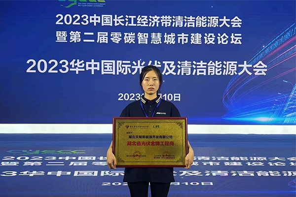 5月10日,在2023第二屆華中國際光伏及清潔能源(武漢)展覽會(huì)頒獎(jiǎng)儀式上,襄陽傲天新能源科技有限公司榮獲湖北省光伏金牌工程商、湖北省光伏新銳企業(yè),分別由公司負(fù)責(zé)人牛麒麟,牛冰冰代表公司上臺(tái)領(lǐng)獎(jiǎng)。
